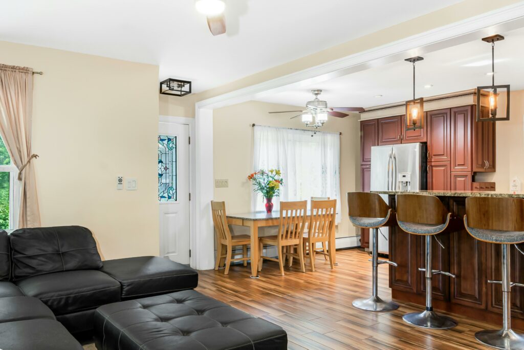 Was passiert ? Dein Auge teilt den Raum automatisch in Bereiche, ohne dass eine echte Trennung da ist. Du sitzt auf dem Sofa und siehst die Küche, aber sie zieht dich nicht visuell rein. Probier’s aus, der Effekt ist verblüffend.